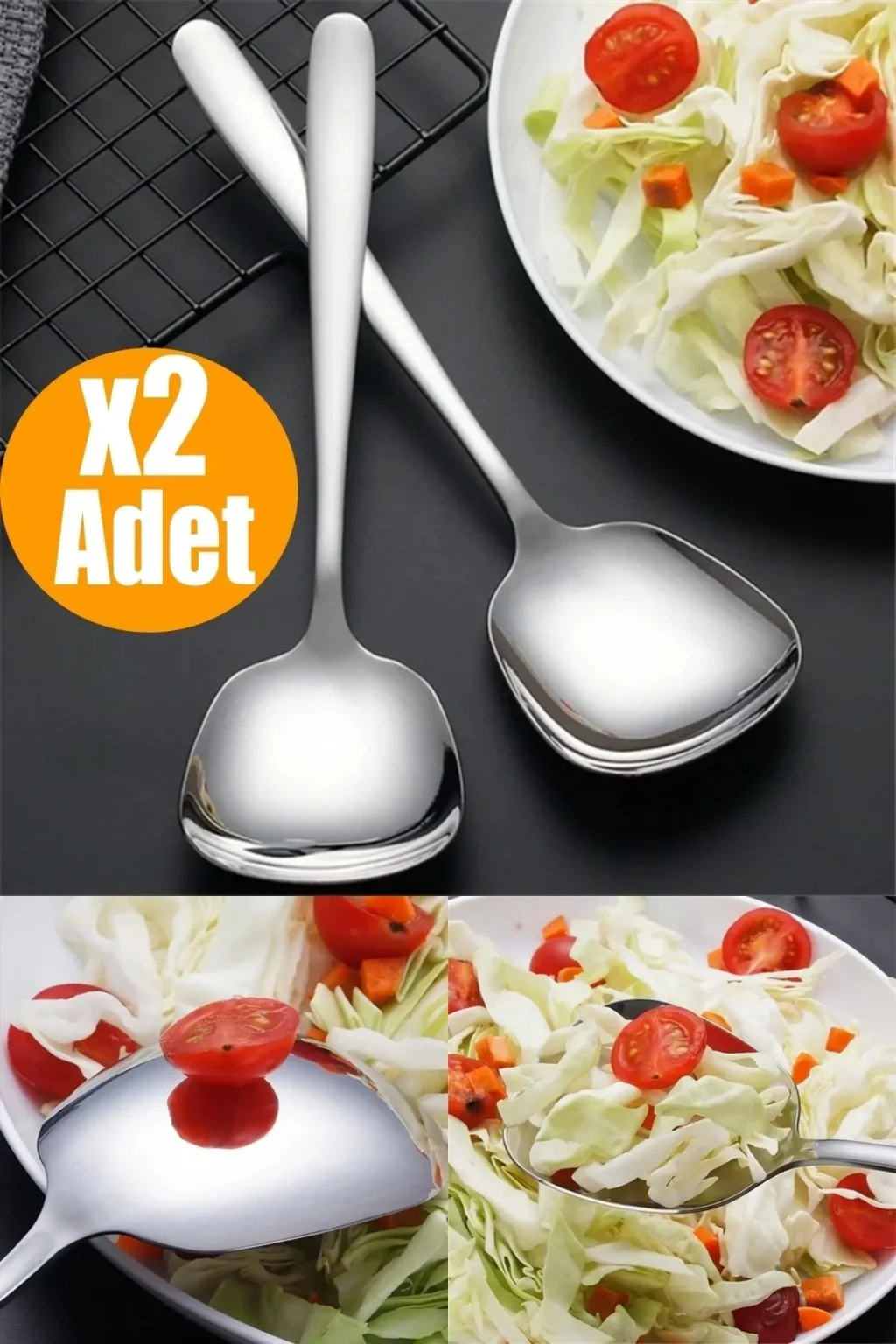 Paslanmaz Çelik 2'li Lüks Servis Kaşığı Seti Yemek Salata Börek Pasta Fırın